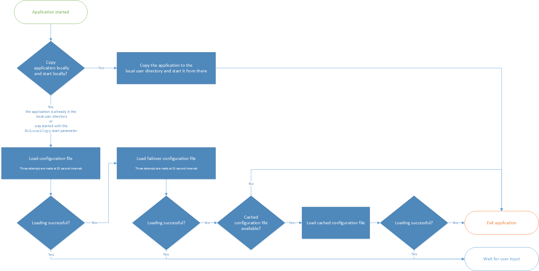 When the IBI-helpMe Client is started, by default, it initially creates a copy of itself in the local user application data directory, then starts this instance and terminates itself. This step is done to reduce network dependence to a minimum. In this way, the application can continue to run even if the network connection is lost. The creation of a copy in the local application data directory can be prevented by using the /NoLocalCopy start parameter. However, this start parameter should only be used if the application is already started from a local storage location.